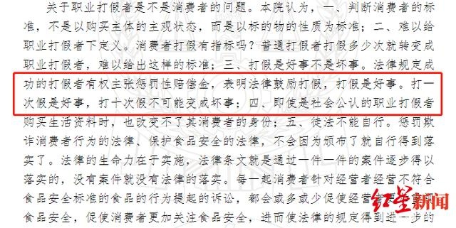 對(duì)此,青島中院負(fù)責(zé)宣傳的工作人員回復(fù)紅星新聞?dòng)浾撸硎痉ü僬J(rèn)為自己該說(shuō)的已經(jīng)都寫在判決書中?,F(xiàn)實(shí)生活中職業(yè)打假的具體情況可能很不一樣,也可能存在爭(zhēng)議,所以不能一概而論。