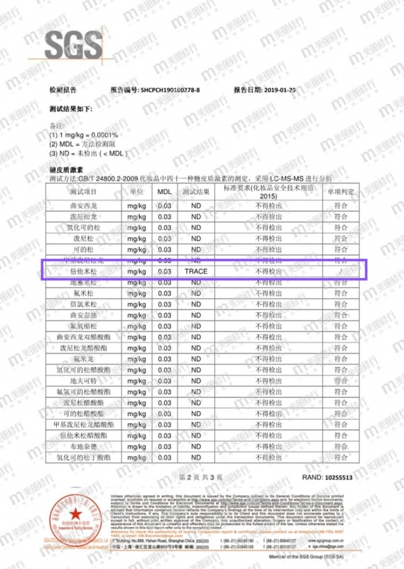 白璞芝寶寶營養(yǎng)果肌霜 SGS 激素檢出