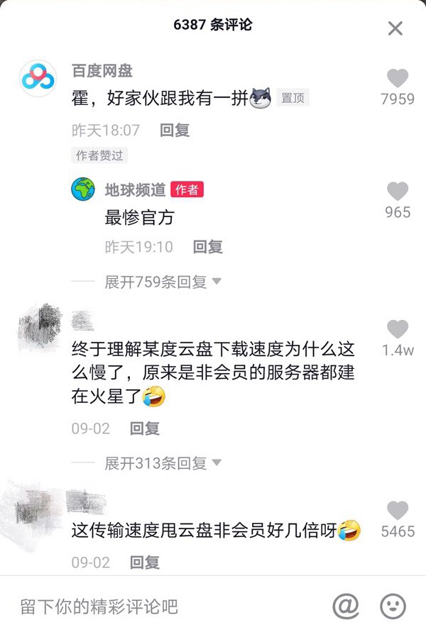 百度網(wǎng)盤對此自黑回復(fù)稱:“嚯,好家伙跟我有一拼”。