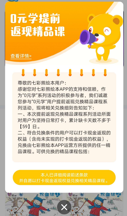 “0元享終身會員”“306天打卡全額退款”“全網(wǎng)獨家0元享終身VIP10000+繪本,一年內(nèi)完成306天打卡可返現(xiàn)”……七彩熊App在多個教育推廣平臺的宣傳口號,讓不少家長心動不已,紛紛掏錢成為會員。