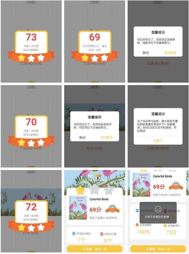 另外,語音讀單詞環(huán)節(jié)也增加了難度,不少家長表示,無論孩子怎么讀,總是只能拿很低的分數(shù),達不到80分的話,不僅意味著打卡失敗,更重要的是對孩子非常打擊。王女士稱,“孩子讀了很多次都是這么低分,都哭了!”她表示,在升級改版前,這些環(huán)節(jié)都能夠正常過關(guān),輕松打卡,但前段時間一次又一次的改版讓過關(guān)變得異常難,有時候浪費一天的時間都過不了關(guān),相當(dāng)于少打一天卡。王女士認為,“這就是七彩熊公司故意設(shè)置的!”