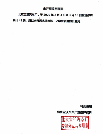 ▲寶沃汽車工廠春節(jié)、疫情停產(chǎn)說明(來源:北京市企業(yè)事業(yè)單位環(huán)境信息公開平臺(tái))