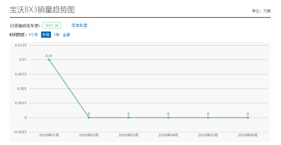 ▲寶沃BX3連續(xù)5個(gè)月銷量掛零(來源:搜狐汽車)