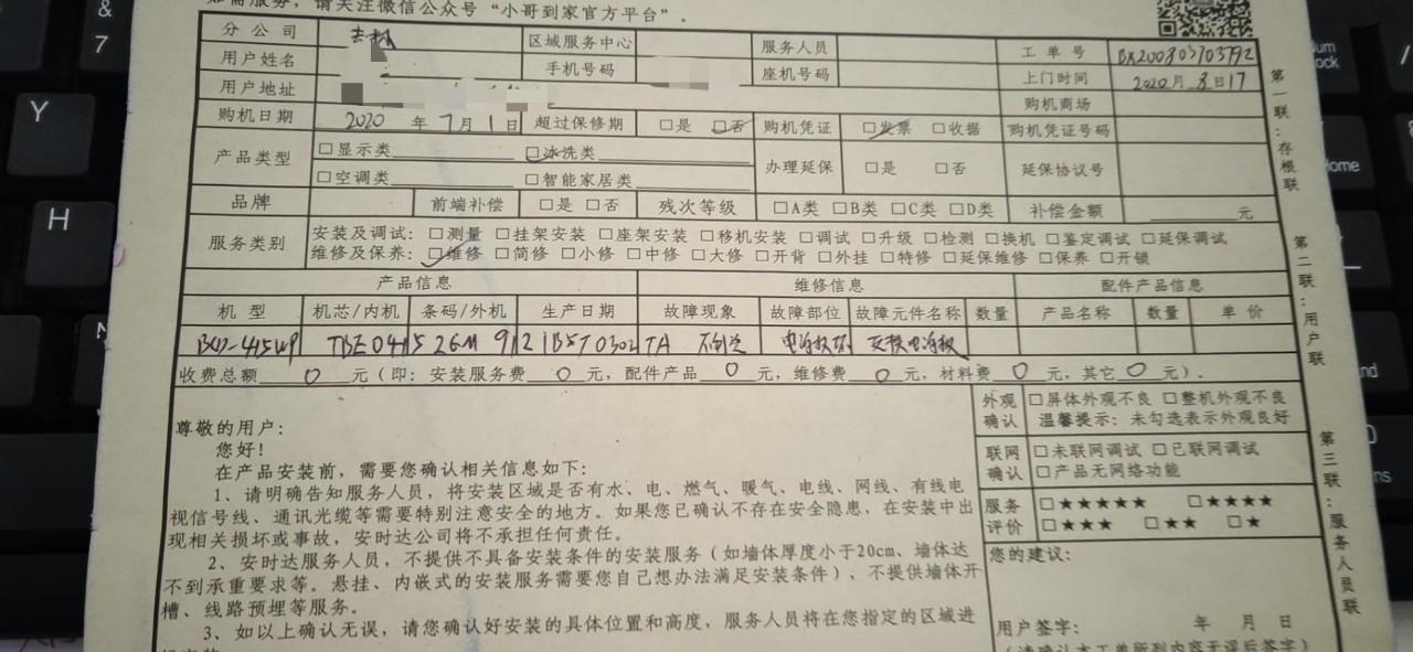“8月3日當天維修師傅上門后就沒有工作人員聯(lián)系我了,從8月9日開始,我每天都有撥打創(chuàng)維的客服電話,客服人員每次都說會有工作人員聯(lián)系我,但是一直沒有人聯(lián)系我?!蓖跸壬硎尽?/p>