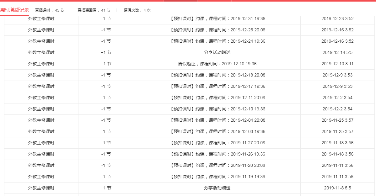 除了上述變化外,更讓家長們措手不及的是,原本不設有效期的主修課,在這次“升級”中也被加上了有效期限制。丁欣告訴記者,她其中一個帳戶里還有134節(jié)一對一有教材歐美30分鐘外教主修課。為了減少損失,她毫無辦法,只能讓孩子每天開始大量地約課上課?!捌鋵嵾@樣上課,孩子都無法吸收,加上年后學校一直未開學,孩子每天網課多,眼睛負擔很重,孩子也是很累?!闭劶斑@事,丁欣顯得無奈又心疼。