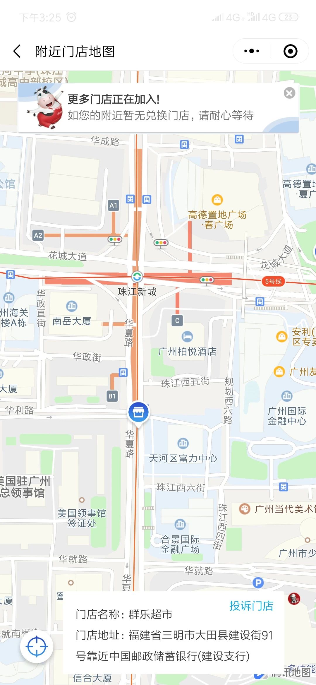 對(duì)此,《消費(fèi)者報(bào)道》在某大型超市隨機(jī)購(gòu)買(mǎi)了3瓶蒙牛純甄小蠻腰,其中一瓶獲得“再來(lái)一瓶”的獎(jiǎng)勵(lì)。記者通過(guò)小程序查找官方指定的兌換門(mén)店,發(fā)現(xiàn)部分指定門(mén)店的名稱和地址與實(shí)際大相徑庭,定位為廣州市珠江新城的周邊,其門(mén)店地址卻顯示為福建省三明市某地。此外,記者根據(jù)地圖顯示的位置到實(shí)地探尋,發(fā)現(xiàn)該指定門(mén)店并不存在?!断M(fèi)者報(bào)道》針對(duì)此事多次撥打蒙牛純甄的客服咨詢,但均以忙音結(jié)束。