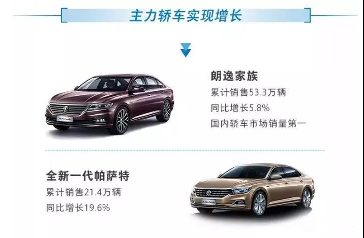 ▲上汽大眾多個車型汽車銷量同比大幅增長