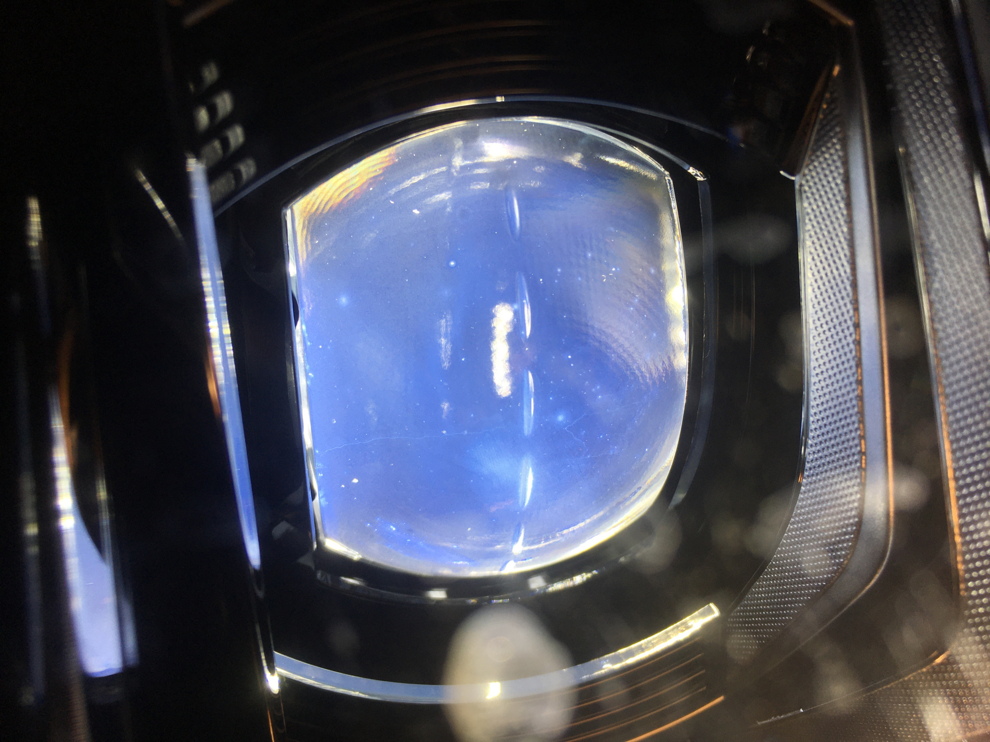 邢先生向本刊提供了自己汽車車燈的照片,從照片來看,車燈總體呈藍色,即使在黑暗的環(huán)境下燈光亮度也比較低?!拔乙郧暗能嚺涞氖躯u素車燈,感覺都比這LED燈要亮?!毙舷壬硎荆骸耙郧安辉谝獾臅r候沒什么感覺,現(xiàn)在晚上開車總感覺不安全。”