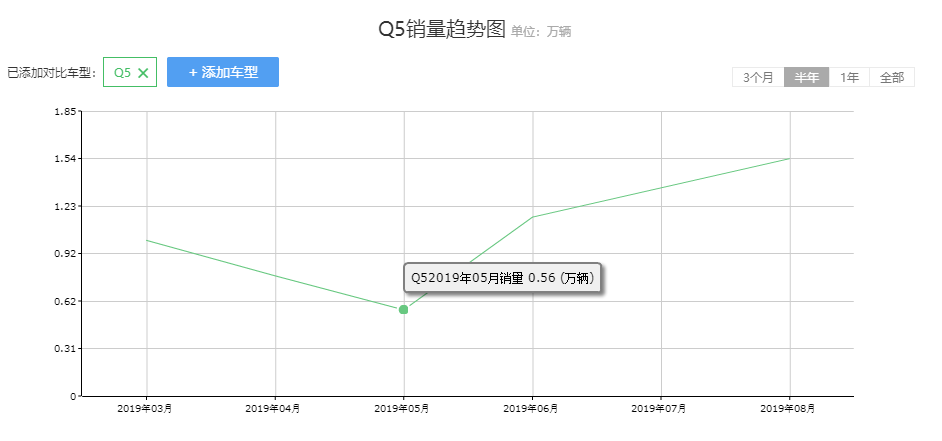 ?▲奧迪Q5在最近3個月的銷量呈明顯的上升趨勢