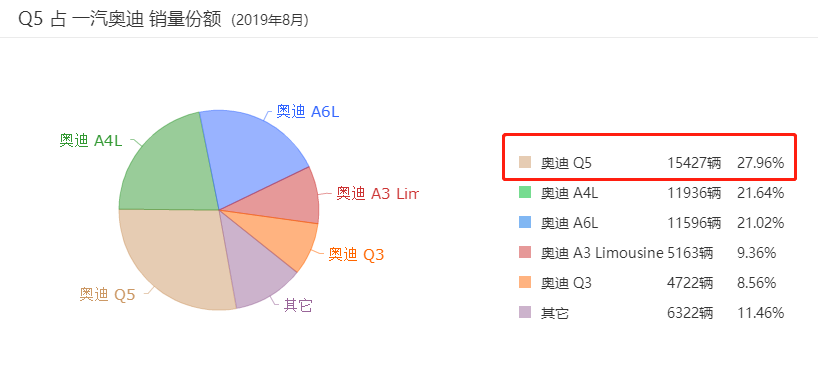 搜狐汽車的數(shù)據(jù)發(fā)現(xiàn),奧迪Q5在最近3個月的銷量呈明顯的上升趨勢,在一汽大眾奧迪的汽車中銷售份額最高,占比接近28%。