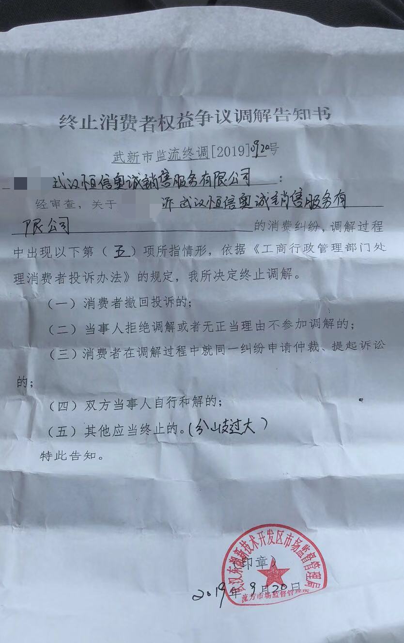 ?▲當(dāng)?shù)厥袌霰O(jiān)督管理局出具的調(diào)解告知書顯示雙方分歧過大