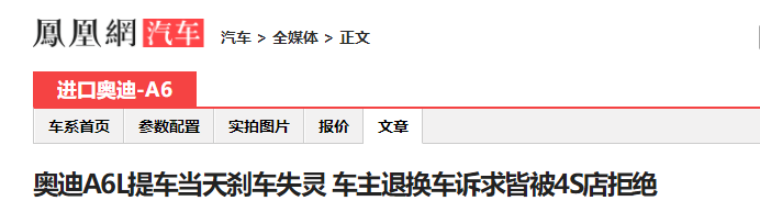 另外,奧迪Q5L的“姐妹車型”奧迪Q5也屢因質(zhì)量問題被投訴,其中剎車失靈問題成為奧迪Q5投訴的“重災(zāi)區(qū)”,有車主甚至因為剎車失靈而遭遇車禍并造成人員受傷。