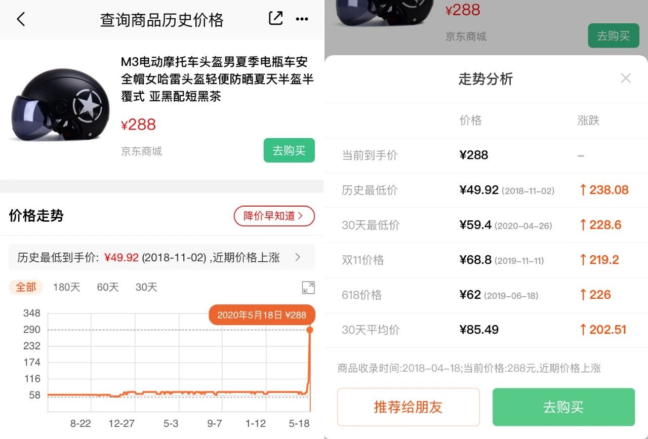 隨著搶購頭盔的人越來越多,頭盔價格暴漲讓網(wǎng)友直呼太離譜。《消費者報道》了解到,京東平臺銷量較高的電動摩托車頭盔30天最低價為59.4元,而當(dāng)前到手價為288元,上漲了228.6元。天貓平臺銷量較高的電動摩托車頭盔30天最低價為23.8元,當(dāng)前到手價為110元,上漲了86.2元。