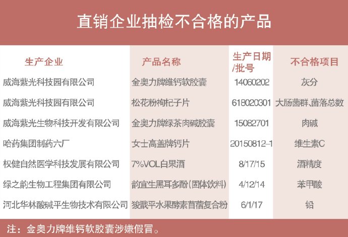 ?此外,哈藥、權(quán)健、綠之韻、華林等企業(yè)也在名單之上,涉及的不合格產(chǎn)品不全是直銷產(chǎn)品,還包括該企業(yè)旗下的其他產(chǎn)品,如飲料、酒類等。