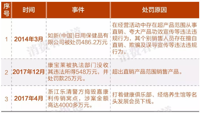 我們熟知的直銷企業(yè)中,就有不少企業(yè)曾因出現(xiàn)上述行為被處罰。