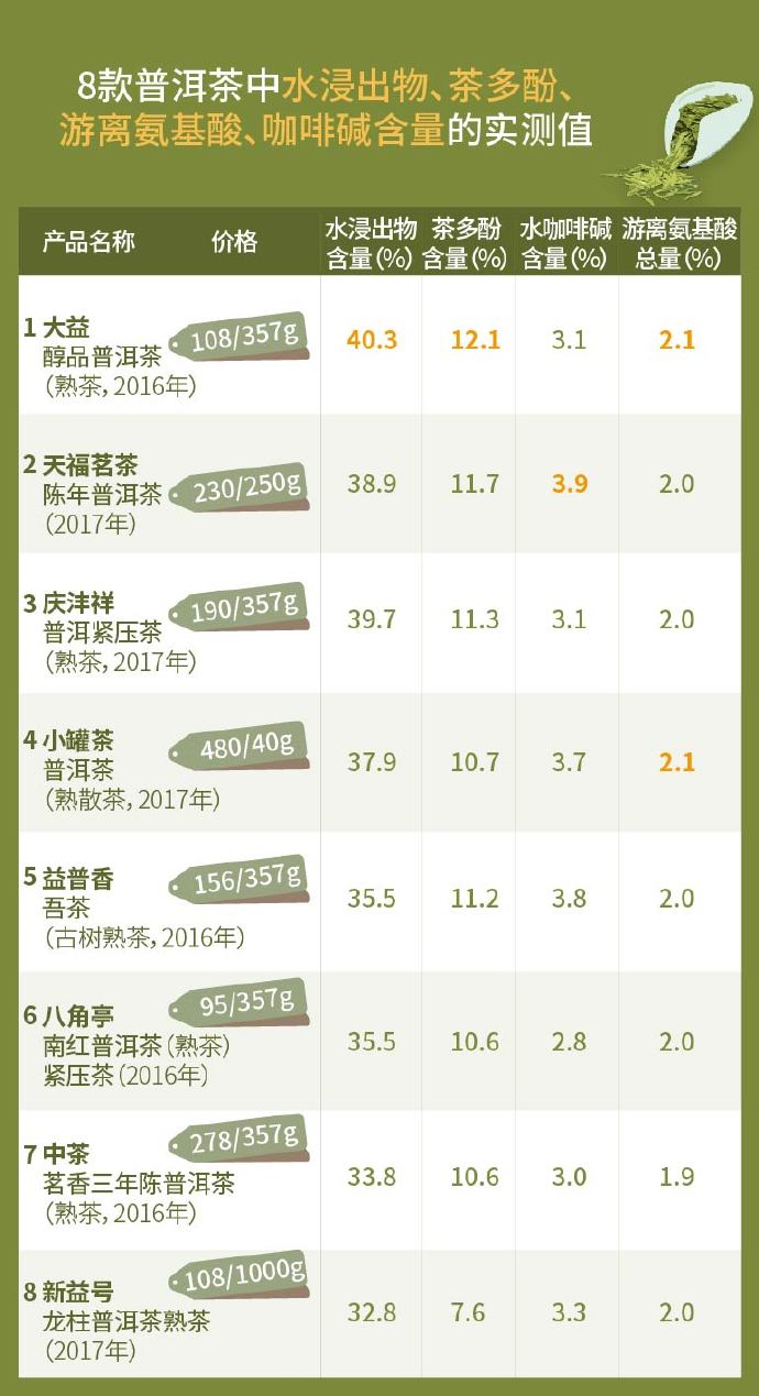 早在2017年12月,《消費(fèi)者報(bào)道》就送檢了8款普洱茶,當(dāng)中就有自稱為大師扛鼎之作的小罐茶,并以水浸出物、茶多酚、咖啡堿、游離氨基酸的含量作為評價(jià)指標(biāo)。