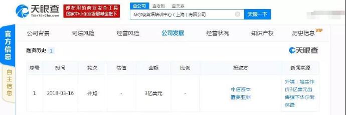 另據(jù)天眼查信息,華爾街英語的母公司培生集團已經(jīng)在今年3月將華爾街英語以3億美元的價格賣給了一家和中信資本與霸菱亞洲有關(guān)聯(lián)的中國財團,也就是說,現(xiàn)在的華爾街英語已經(jīng)是一家中國公司了。