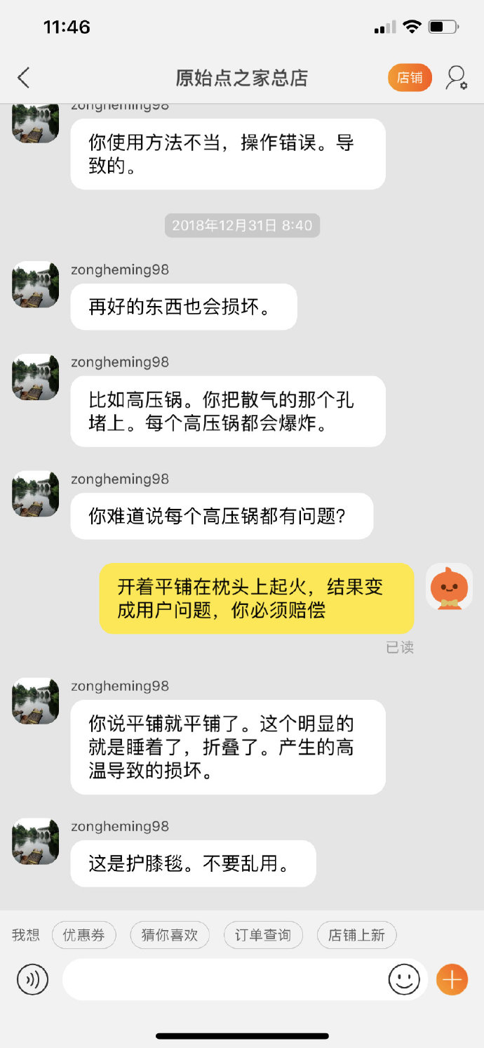 網(wǎng)購(gòu)雜牌電熱毯半夜自燃,夸大宣傳的淘寶賣(mài)家推卸責(zé)任!