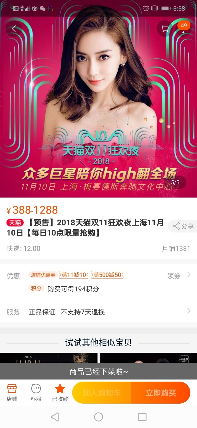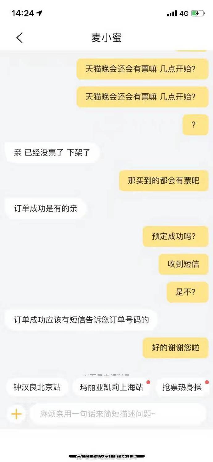 蹊蹺的是直到10月31日早上10點(diǎn),大麥天貓旗艦店還放出雙11晚會門票搶購,且暫時沒有聽到大麥天貓旗艦店的票被退票,而被天貓客服通知前往大麥網(wǎng)購的票卻被退票,對此,不少消費(fèi)者表示“好無辜”。