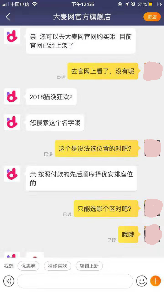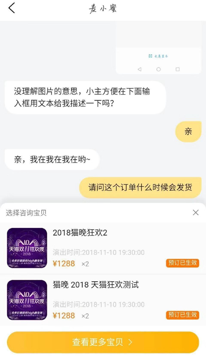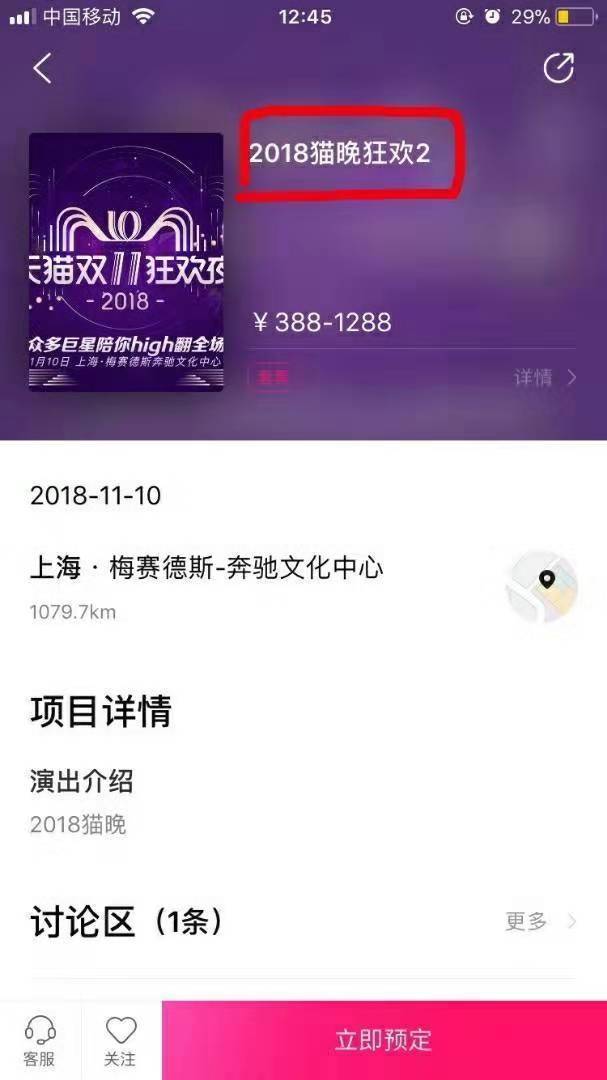?10月29日,大麥天貓客服通知可購“2018貓晚狂歡2”