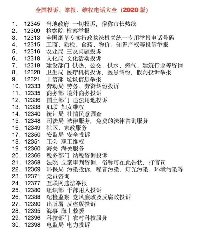 投訴電話大全,老百姓投訴電話大全,生活中常用的投訴電話大全.收藏備用