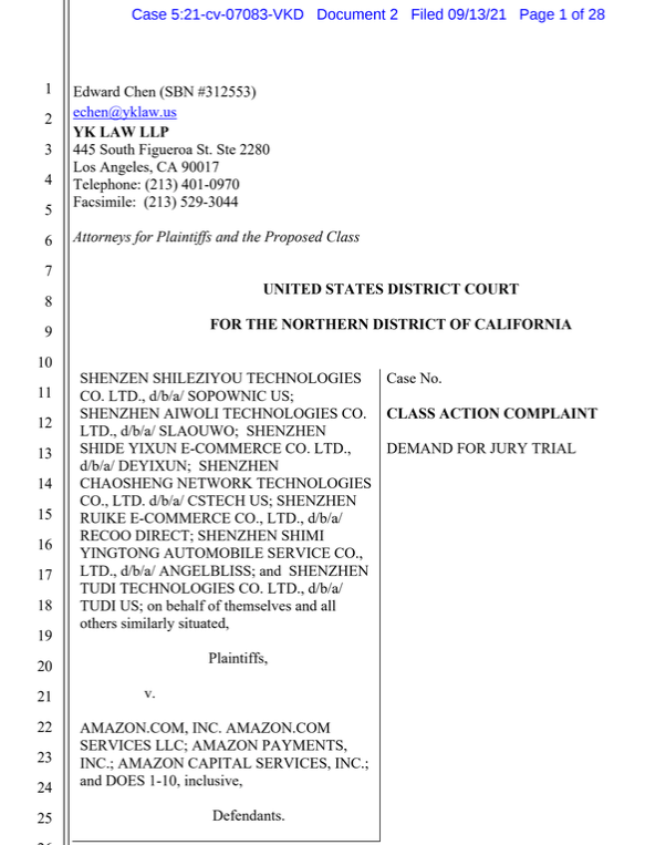 訴狀顯示,中國公司尋求“拿回被亞馬遜非法、不當(dāng)扣留的資金”,提交集體訴訟旨在防止任何合法、正當(dāng)歸屬于數(shù)千家亞馬遜賣家和商戶的資金被進(jìn)一步“侵吞和誤用”