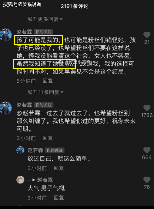 當(dāng)然,網(wǎng)友們對(duì)于那個(gè)導(dǎo)致羅小貓被網(wǎng)暴的前男友也深感不滿(mǎn),質(zhì)疑是這位前男友引導(dǎo)粉絲網(wǎng)暴羅小貓。羅小貓的前男友叫趙若霖,也是一名網(wǎng)紅。在跟羅小貓分手之后,他在評(píng)論區(qū)里表述了羅小貓的職業(yè)、關(guān)于羅小貓肚子里的孩子的事情,引起了他的粉絲跟某些網(wǎng)友的憤怒,于是開(kāi)始網(wǎng)暴羅小貓,而羅小貓噩夢(mèng)般的生活也就此開(kāi)啟。