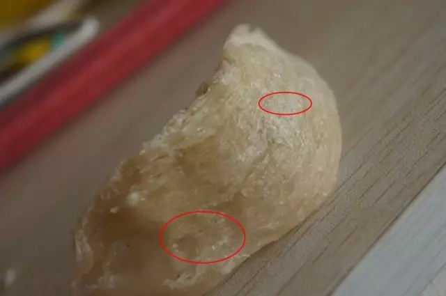 2、透光看,刷膠燕窩的表面 是均勻分布的,沒有層次感,甚至有的盞還可以看到一層薄薄的膠質(zhì)層。?