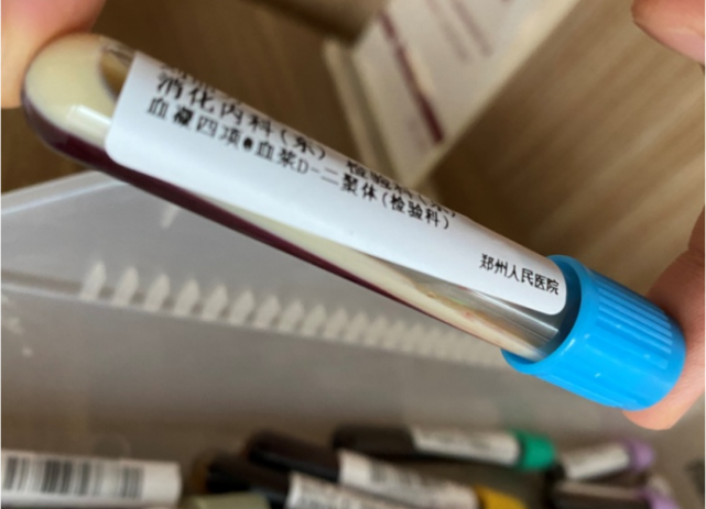 抽血試管中可見明顯血脂分層呈“牛奶色”
