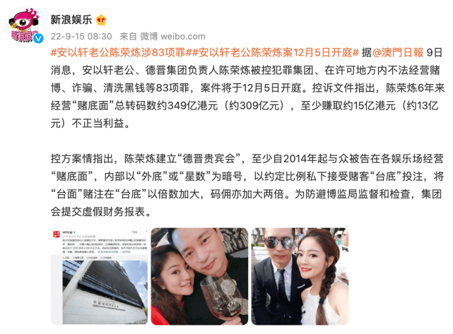 安以軒老公犯罪涉及金額高達(dá)309億 不法經(jīng)營賭博、詐騙、清洗黑錢