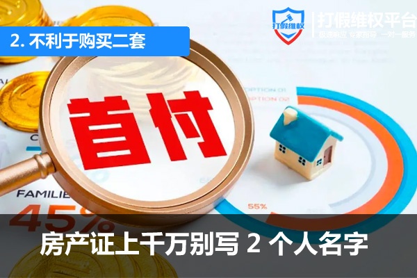 現(xiàn)在很多城市都有限購政策也是房產(chǎn)證上千萬別寫2個人名字的原因,不管是在本地還是在外地,只要買過房或者有過房貸未還清,房子有沒有賣掉,再買房都算二套。而且由于雙方都有了貸款記錄,假離婚再買房也算二套,而第二套的首付比例,以及相關(guān)的貸款優(yōu)惠政策都是要少于首套房的。并且如果以夫妻一方的名義購買貸款房產(chǎn)證上寫兩個人名字,假離婚之后,另一方有購房資格,單獨購買的話,是算首套,也有時間限制,所以就有人提出房產(chǎn)證上千萬別寫2個人名字了。