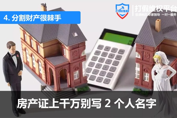 房產(chǎn)證上千萬別寫2個人名字,現(xiàn)在夫妻是已經(jīng)結(jié)婚了的,那么他們的婚后買房是誰的名字都是沒有關(guān)系的,因為這已經(jīng)是你們的共同財產(chǎn)了,所以在這上面來講婚后買房只寫一方的話是沒有利弊的,中國打假網(wǎng)為廣大網(wǎng)友指出為什么房產(chǎn)證上盡量不要寫2個人的名子