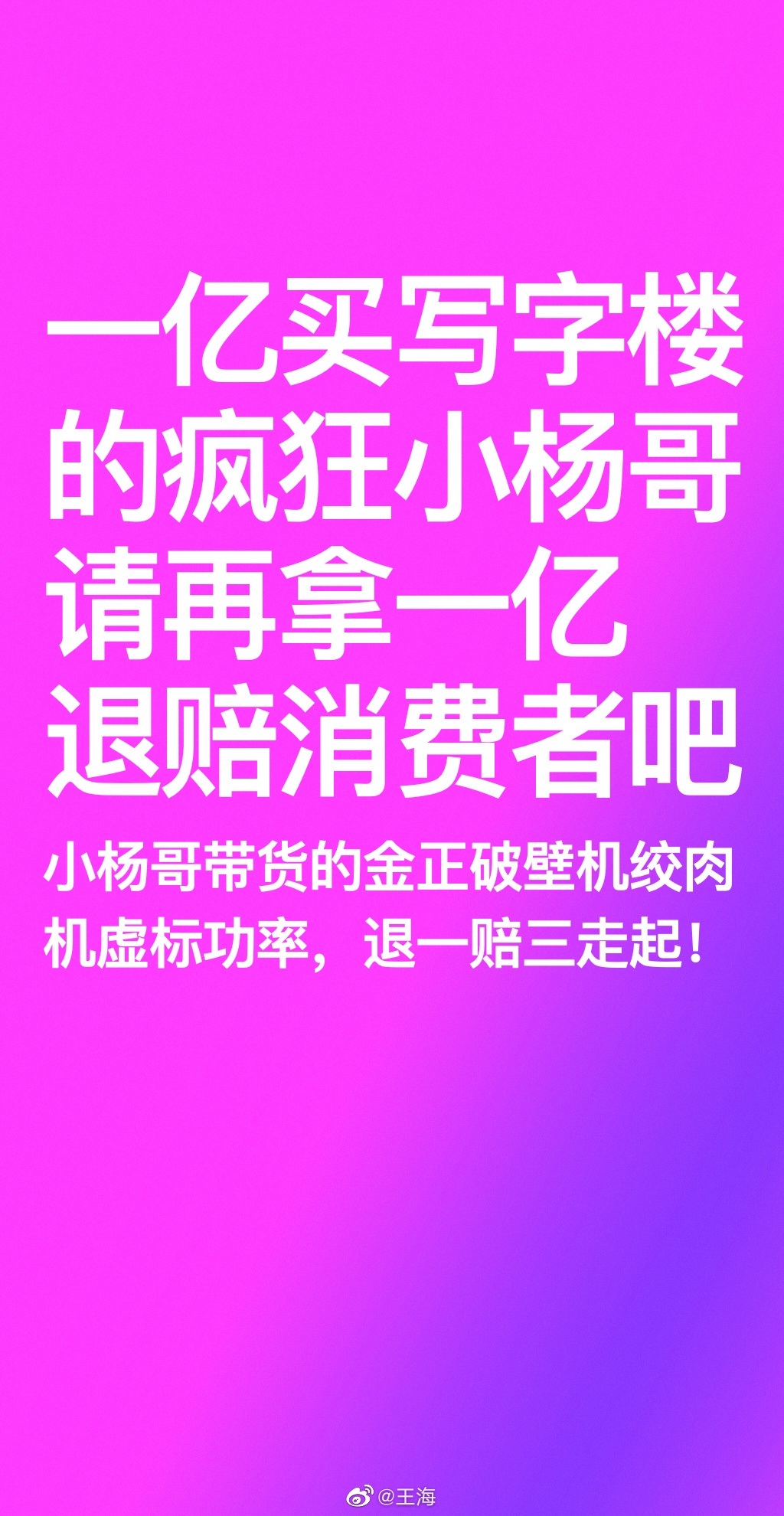近日,知名打假人王海發(fā)布視頻表示,瘋狂小楊哥三只羊直播間售賣的金正破壁機(jī)和絞肉機(jī)均為虛標(biāo)功率。