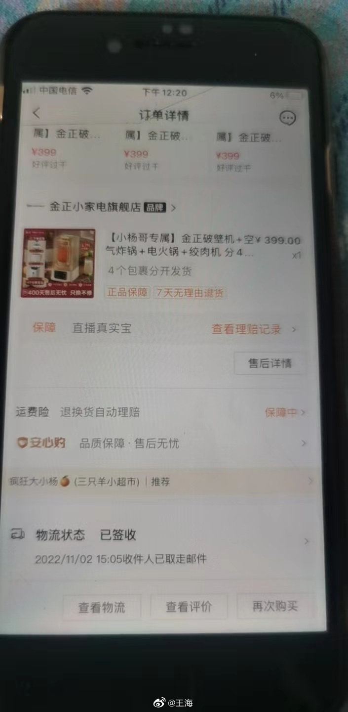知名打假人王海發(fā)布視頻表示,瘋狂小楊哥三只羊直播間售賣的金正破壁機(jī)和絞肉機(jī)均為虛標(biāo)功率。據(jù)介紹,破壁機(jī)標(biāo)注功率為300W,實(shí)際僅為105W,絞肉機(jī)標(biāo)注功率300W,實(shí)際功率為120W。由于產(chǎn)品的頁(yè)面標(biāo)注退一賠三,且這款產(chǎn)品的賣價(jià)為399元,售出的數(shù)量為6.8萬(wàn)。如果按照退一賠三,那么他將退款賠付的總金額高達(dá)一個(gè)億。