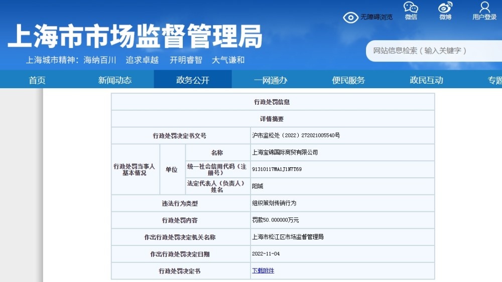 上海市松江區(qū)市場監(jiān)管局指出,上海寶錦國際商貿(mào)有限公司通過互聯(lián)網(wǎng)利用“億家拼”APP購物平臺設(shè)置注冊推薦人制度、會員升級“四層三級”返利模式的營銷方式形成了“億家拼”APP傳銷制度規(guī)則,符合《中華人民共和國禁止傳銷條例》對傳銷的定義,構(gòu)成了組織傳銷行為。