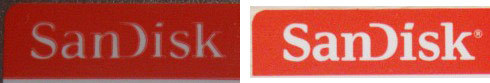 真卡的“SanDisk”字樣印刷清晰,同樣后面要有一個(gè)注冊(cè)商標(biāo)標(biāo)記(r)。