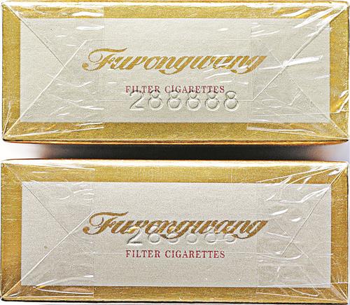 真假背面商標紙印刷工藝差異對比:真煙商標紙采用激光全息防偽,全息圖旋轉(zhuǎn)不同角度將分別呈現(xiàn)“芙蓉王”“Furongwang”字體和“芙蓉花”,底部邊緣18位產(chǎn)品追溯數(shù)碼字體較??;假煙采用高清掃描仿制印刷,全息圖旋轉(zhuǎn)時“Furongwang”字體不清晰,底部邊緣18位產(chǎn)品追溯數(shù)碼字體明顯較大。