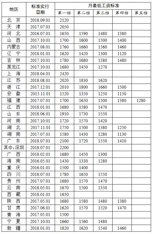 在小時最低工資標(biāo)準(zhǔn)方面,北京、上海、天津、廣東的小時最低工資標(biāo)準(zhǔn)超過20元大關(guān)。