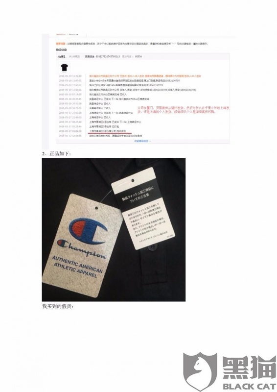 原標(biāo)題:曝光蘇寧易購自營授權(quán)店賣Champion假貨,本新聞源之新浪黑貓投訴