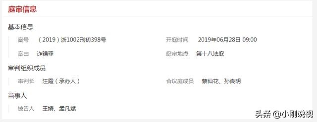 下圖是浙江臺州法院一審祁天道(孟凡斌)和妻子(王婧),庭審現(xiàn)場曝光。法官當庭宣判:孟凡斌和王婧以非法占有為目的,虛構事實詐騙他人財物,在互聯(lián)網組建詐騙團伙,該團伙分工合作在網絡平臺,以繳納入會費、馬甲費等為由騙取被害人錢財,其行為已經觸犯《刑法》應當按照詐騙罪定罪。