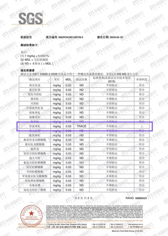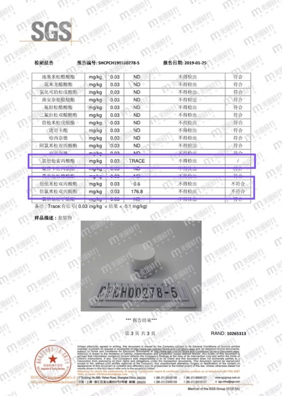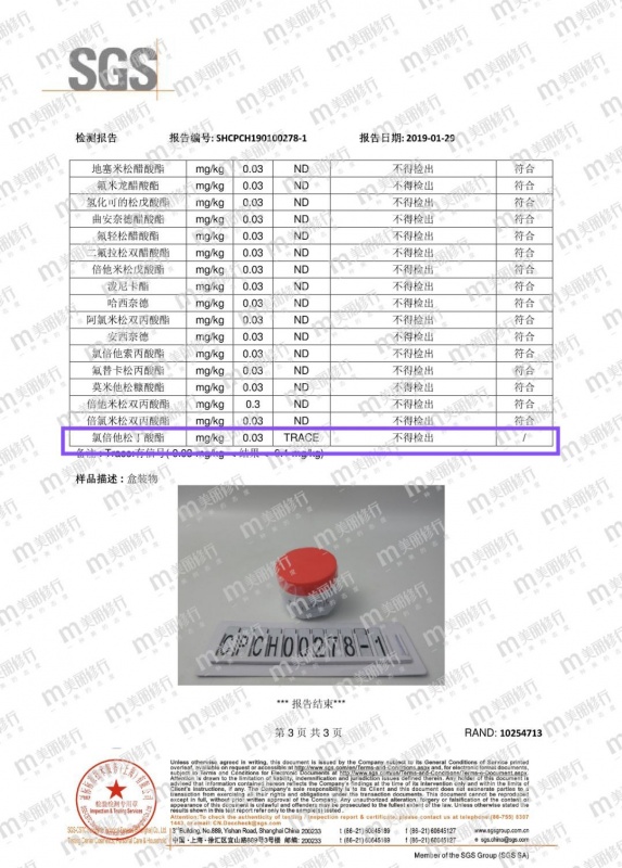 當因有干擾波得出TRACE的結(jié)果,無法檢出激素含量的時候,SGS的報告也不能給他們下「不符合」的判定,只能記為「/」。