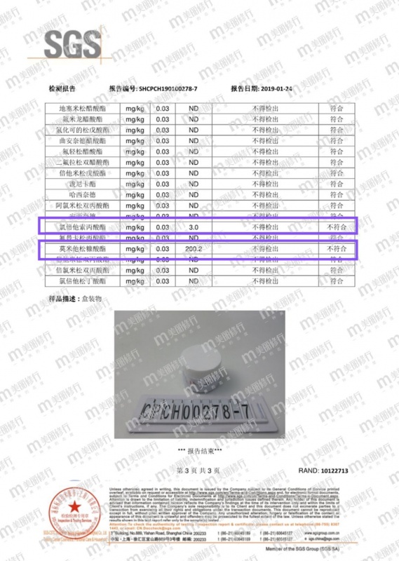 - 鵲膚霜(兒童型)?SGS 激素檢出
