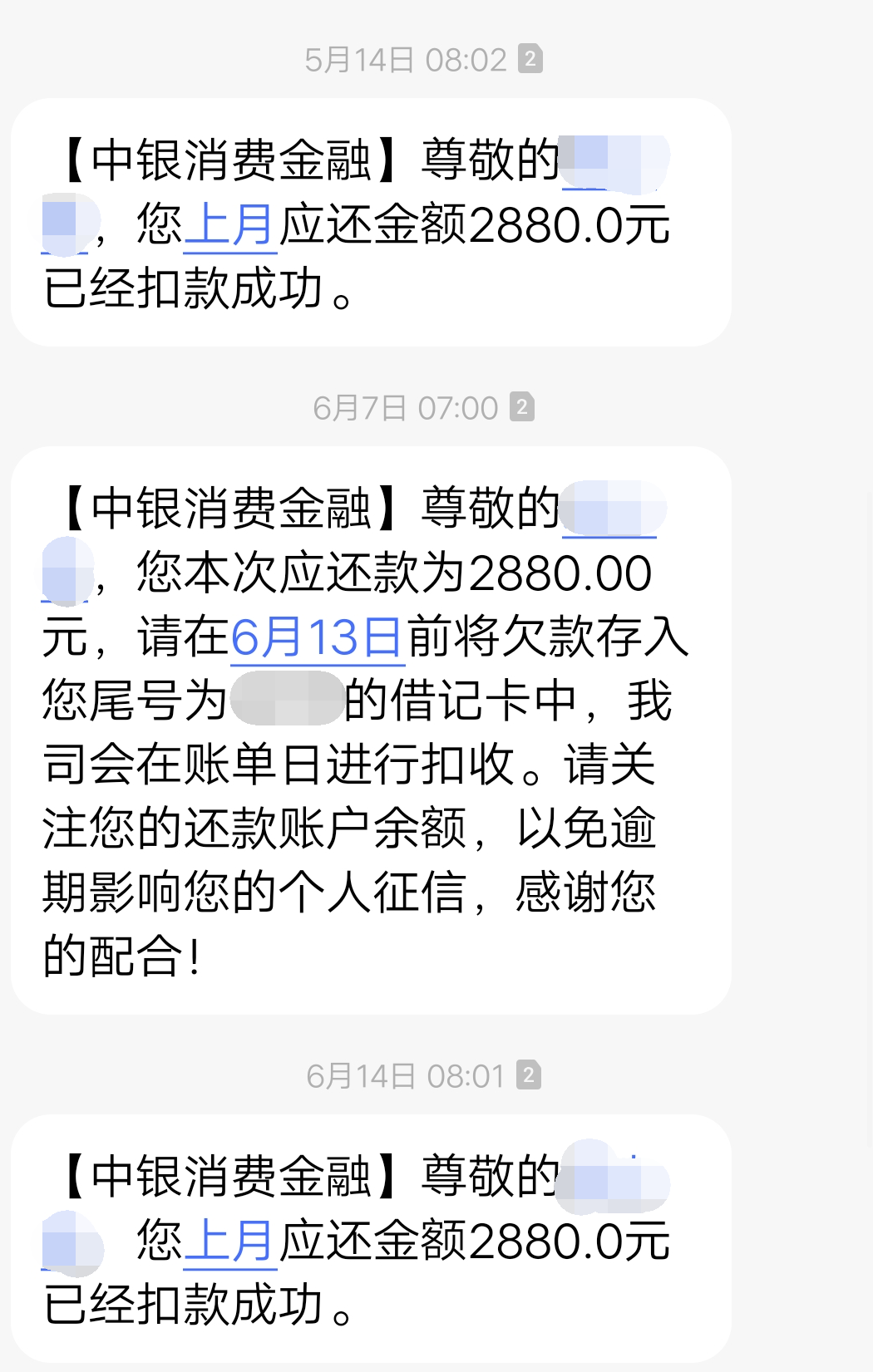 ▲林萍在聚投訴上提供的銀行提醒還款記錄