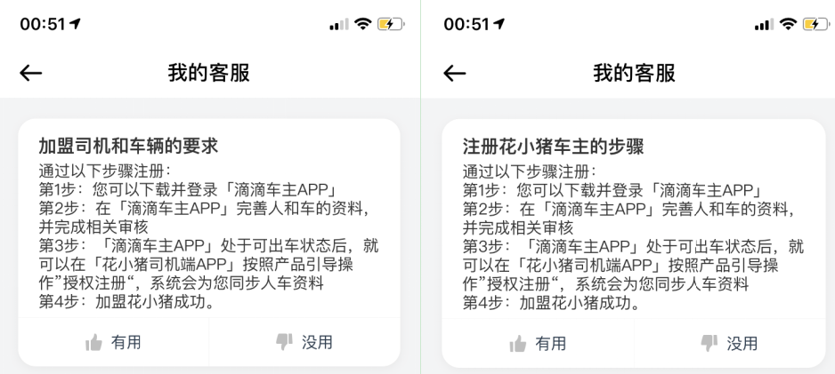 根據(jù)花小豬平臺(司機端)的要求,加盟花小豬的司機和車輛,需要先在“滴滴車主App”里完善人和車的資料并完成相關(guān)審核,當(dāng)“滴滴車主App”處于可出車狀態(tài)后,就可以在“花小豬司機端App”按照產(chǎn)品引導(dǎo)進行授權(quán)注冊,將人車資料進行同步。而在花小豬打車App里,客服表示,為保障乘客的出行安全和體驗,在車輛和司機方面,花小豬只對現(xiàn)有滴滴注冊車輛和司機開放,且采取了和滴滴同樣的安全和合規(guī)標準。