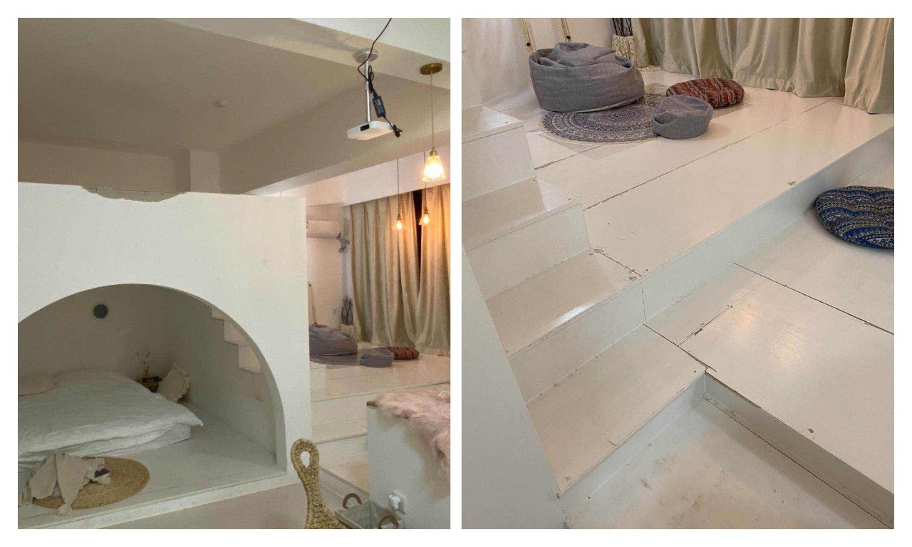 劉女士告訴《消費(fèi)者報(bào)道》,她們進(jìn)到房間后,更是發(fā)現(xiàn)實(shí)際情況與愛彼迎里的照片嚴(yán)重不符:“墻皮脫落,地板破舊,地上有頭發(fā),而且有股刺鼻的消毒水的味道,根本無法長時(shí)間住人?!眲⑴糠Q,自己和朋友當(dāng)下就決定另找酒店入住,同時(shí)也與民宿管家反映了情況。