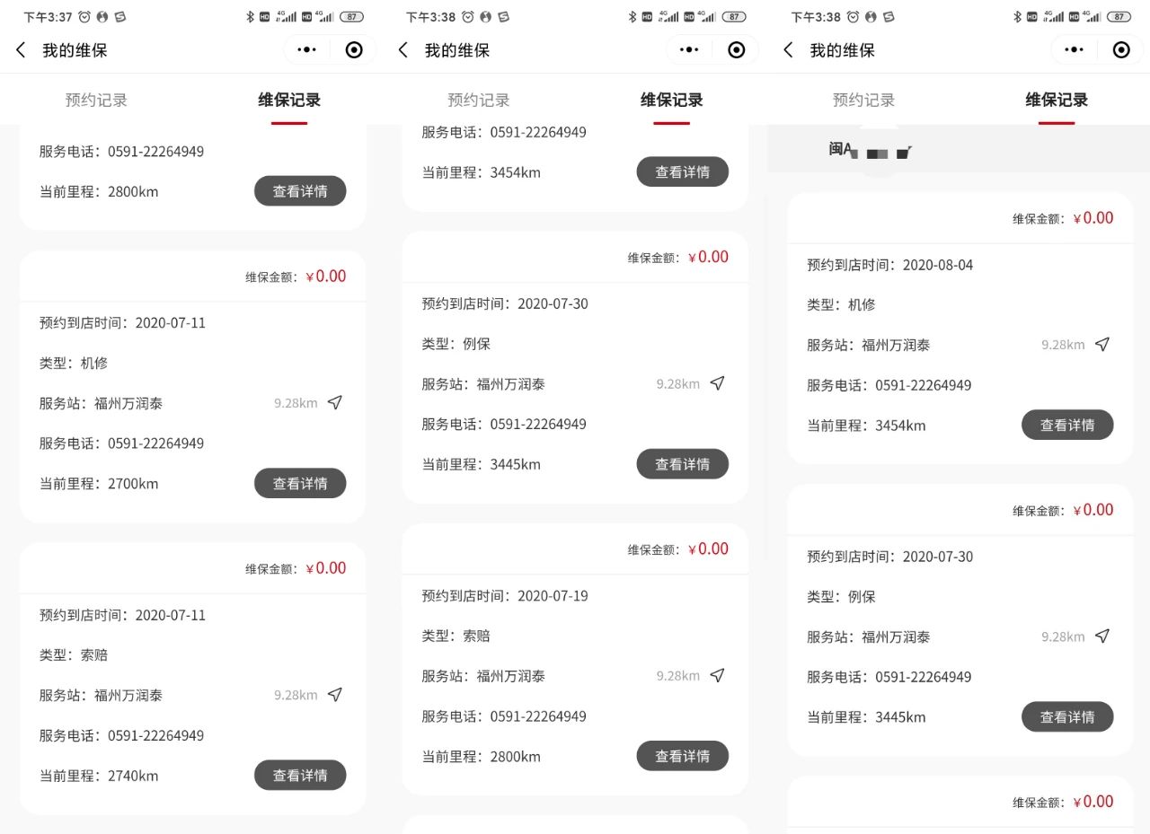 ▲鄭先生的汽車在4S店的多次維修記錄