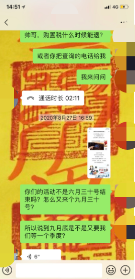 然而,購車將近4個月后,牛女士仍未收到購置稅的退款。“我聯(lián)系過4S店銷售人員很多次了,一開始說到了6月30日活動結(jié)束后會依次打款,結(jié)果7月中旬的時候又說要等到這一個季度過去后才能打款,9月初的時候又說不清楚具體的退款時間?!迸E空f道。