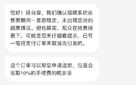 貓眼平臺(tái)系統(tǒng)疑“跳票”,門票時(shí)間被更換,退票還要收10%手續(xù)費(fèi)?