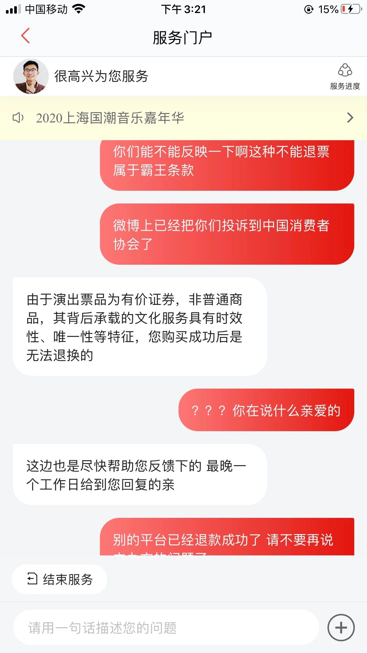 近日,《消費(fèi)者報(bào)道》收到了網(wǎng)友的投訴,表示其在貓眼、票星球上購買的上海國潮音樂嘉年華因系統(tǒng)跳票等問題退票受阻。