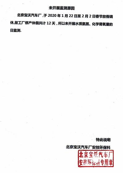 ▲寶沃汽車工廠春節(jié)、疫情停產(chǎn)說明(來源:北京市企業(yè)事業(yè)單位環(huán)境信息公開平臺(tái))